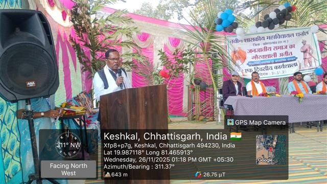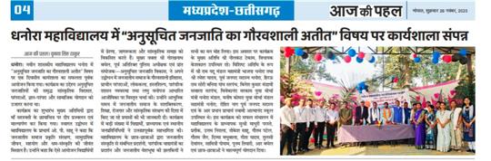 दिनांक 26/11/2025 को पी एम श्री स्वामी आत्मानंद हाइयर सेकन्डेरी स्कूल के प्रांगण मे एक दिवसीय कार्यशाला जनजातीय समाज का गौरवशालि अतीत सामाजिक ऐतिहासिक आध्यात्मिक योगदान विषय पर किया गया । इस कार्यक्रम मे मुख्य अतिथि एवं मुख्य वक्ता के रूप मे श्री गोरखनाथ बघेल सेवा निवृत्त अतिरिक्त पूलिस अधीक्षक जी उपस्थित रहे साथ ही JBS सदस्य श्री विवेकानंद मरकाम, महामंडल महामंत्री बीजेपी श्री राम यदु पूर्व जनपद उपाध्यक्ष श्री रमेश यादव सरपंच बनिया गाँव श्री हिरऊ शोरी सरपंच सवाला श्री बिनेश मंडावी की गरिमामायी उपस्थिति रही । कार्यक्रम की अध्यक्षता महाविध्यालय के प्राचार्य श्री ओ पी साहू के द्वारा किया गया । इस अवसर पर छात्र छात्राओ द्वारा कार्यशाला मे जनजातीय वेशभूषा एवं सांस्कृतिक कार्यक्रम प्रस्तुत किए गए .