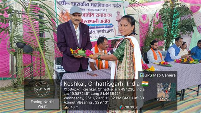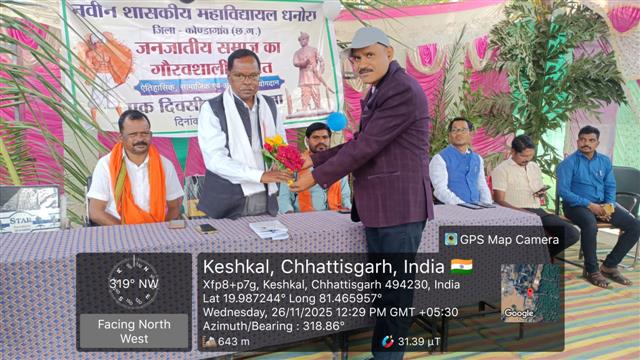 दिनांक 26/11/2025 को पी एम श्री स्वामी आत्मानंद हाइयर सेकन्डेरी स्कूल के प्रांगण मे एक दिवसीय कार्यशाला जनजातीय समाज का गौरवशालि अतीत सामाजिक ऐतिहासिक आध्यात्मिक योगदान विषय पर किया गया । इस कार्यक्रम मे मुख्य अतिथि एवं मुख्य वक्ता के रूप मे श्री गोरखनाथ बघेल सेवा निवृत्त अतिरिक्त पूलिस अधीक्षक जी उपस्थित रहे साथ ही JBS सदस्य श्री विवेकानंद मरकाम, महामंडल महामंत्री बीजेपी श्री राम यदु पूर्व जनपद उपाध्यक्ष श्री रमेश यादव सरपंच बनिया गाँव श्री हिरऊ शोरी सरपंच सवाला श्री बिनेश मंडावी की गरिमामायी उपस्थिति रही । कार्यक्रम की अध्यक्षता महाविध्यालय के प्राचार्य श्री ओ पी साहू के द्वारा किया गया । इस अवसर पर छात्र छात्राओ द्वारा कार्यशाला मे जनजातीय वेशभूषा एवं सांस्कृतिक कार्यक्रम प्रस्तुत किए गए .
